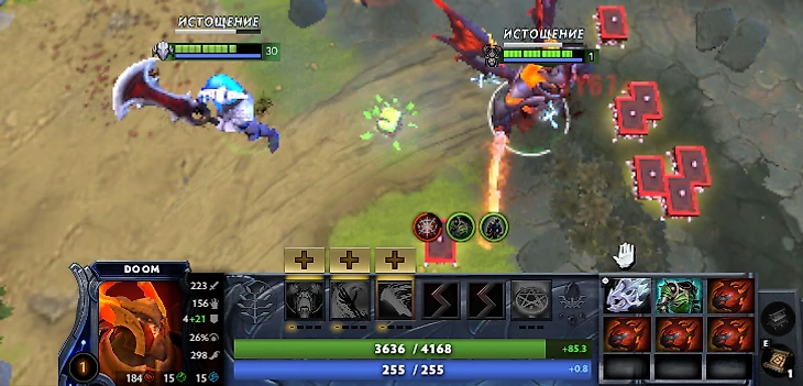 Здесь тоже легко запомнить – истощение выключает ауру способности (скорость атаки), но не выключает ни одну из аур от талантов, которые действуют только на крипов. Причем это относится даже к ситуациям, когда ты призываешь крипов под истощением – они все равно появятся уже с бонусами от аур (Здоровье и скорость передвижения).