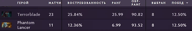 Некоторых героев все же брали, но это приводило лишь к провалам. На игры с Phantom Assasin, Slark, Luna и Arc Warden было физически больно смотреть. Spectre и Tinker также проиграли свою единственную игру на турнире. Отдельно хочется выделить двух героев, получивших одинаковый винрейт на турнире.