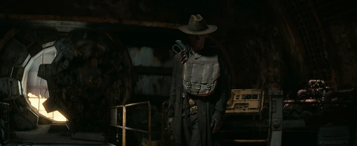 Насколько бы я бесконечно ни любил Fallout от Obsidian и все многочисленные отсылки к нему, стоит оценивать сериал трезво. Уже с первого эпизода шоу близко к пустому фан-сервису, которым грешат номерные части серии от Bethesda. Вся вступительная боевая сцена, состоящая только из отсылок к New Vegas (локация, группировка Великих Ханов, оружие из игры, саундтрек), не приносит повествованию ничего. Кроме, разве что, создания нужного тона будущим событиям в сезоне. Предыдущая сцена с Мистером Хаусом работает куда лучше. Обычный зритель насладится стандартной диалоговой сценой в духе Тарантино, а знакомые с контекстом игры фанаты будут радоваться появлению любимого эксцентричного миллионера.