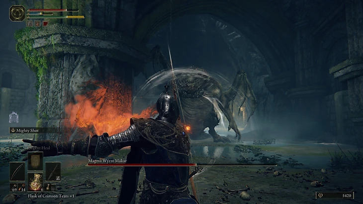 В конце приключения вы сразитесь с боссом Магмовым Змеем Макаром. Он не очень сложный, чаще умираешь от смеха над его именем. Достаточно держаться его бока и отпрыгивать от рек лавы, которые он распространяет вокруг себя. Во второй фазе он поднимается на задние лапы и использует меч, но оставляет достаточно слепых зон для атак.