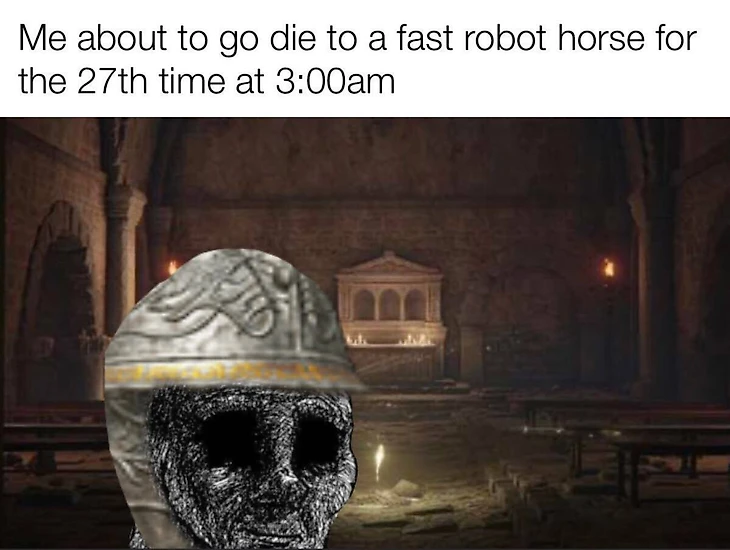 Чего только стоит могила героя Гельмира, где на выходе из коридора с ловкими врагами нужно догадаться спрыгнуть на край пропасти под мостом, чтобы увернуться от колесницы! И все это без костров и возможности телепортироваться из подземелья. В общем, если ни разу не бросали контроллер в стену во время прохождения Elden Ring – вам сюда.