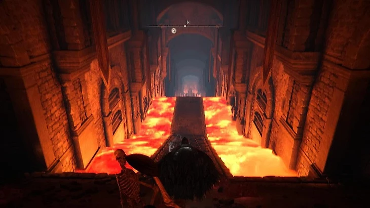 Всем ностальгирующим по Новому Лондо и Деревне Яаар’гул стоит побывать на могилах героев. Могилы – полоса препятствий с заполненными лавой и ловушками коридорами, по которым ездят ваншотные колесницы. Укрыться от них можно только в небольших пещерках по бокам от рельсов. В большинстве пещер поджидают скелеты с луками или мечами. Прекрасное напоминание о локациях из игр «Фромов», которые надо было заучить, чтобы пробежать.