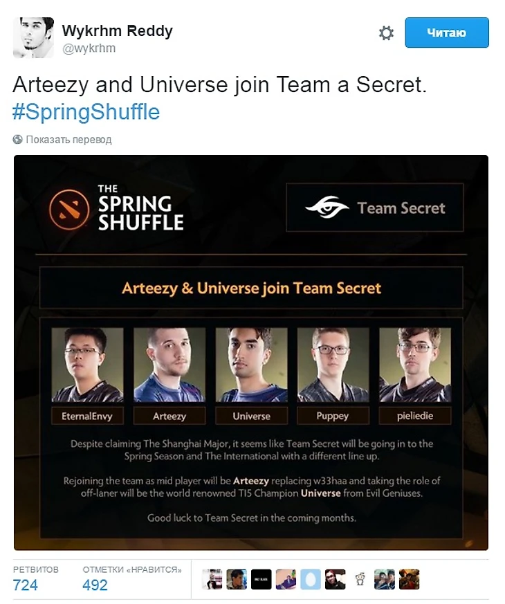 22 марта около 4 часов утра по Москве весь мир Dota 2 стал свидетелем непонятного, неожиданного и громкого трансфера. Артур «Arteezy» Бабаев и Саахил «UNiVeRsE» Арора стали игроками Team Secret, заменив Аливи «w33» Омара и Расмуса «MiSeRy» Флипсена. За пару часов новость о трансфере собрала под 3000 комментариев на Reddit, где одни во всю строчили новые мемы про Артура, а другие пытались найти логику в этом переходе.