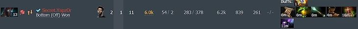 ТБ не делал трипл-киллы, но оказывал давление на бот и стягивал туда саппортов Newbee. В итоге, Ace и MidOne чувствовали себя свободнее и уничтожили свои линии. К 16-й минуте счет был 15:3 с восьмитысячным преимуществом Team Secret.