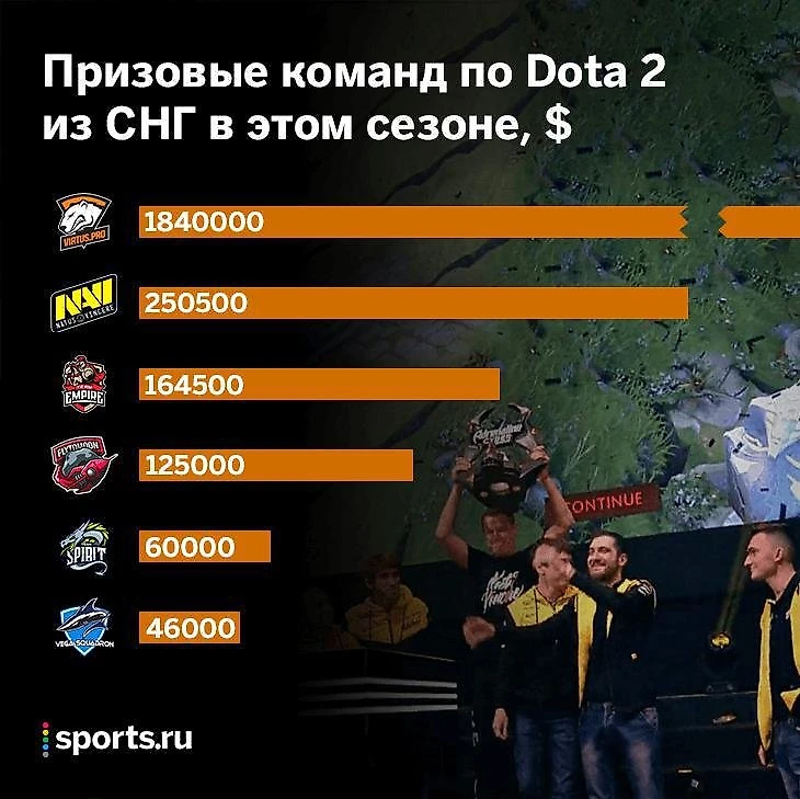 прим.: конечно, в СНГ гораздо больше команд по Dota 2 – однако минимальным порогом попадания в инфографику была взята планка в 20.000 долларов.