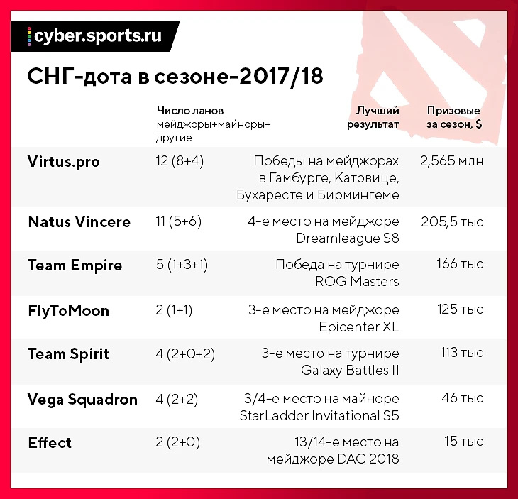 СНГ-дота в сезоне-2017/18: кто сколько выиграл