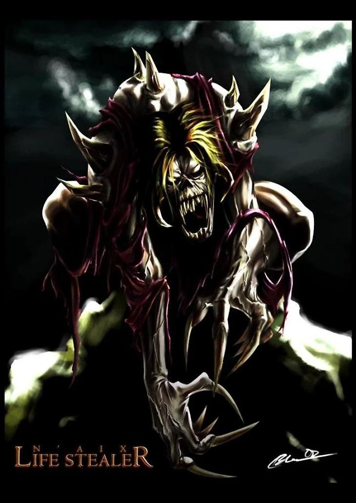 Когда-то в Лордероне жил человек, которого без остатка поглотила жадность. Его поймали, когда он пытался украсть священное кольцо Принца Артаса. Он был осужден и повешен за свое преступление. Однако тело его было настолько испорчено алчностью, что восстало в виде чудовищного упыря. Так на свет явился Н’аикс, а его прежнее имя уже давно забыто. Он – воплощение неутолимой жажды и алчности, проклятый вечно красть жизнь у любого существа на своем пути.
