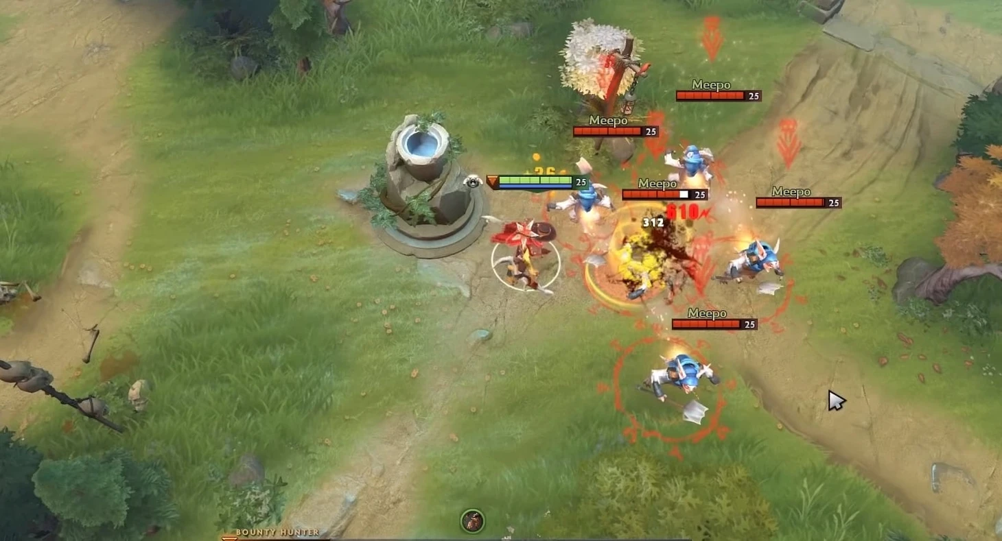 1. Bounty Hunter может получить бонусное золото от Track за всех Meepo сразу – если до фрага повесит на них ульту. Фишка работает и c талантом на 25-м уровне, который дает БХ +300 за убийство.