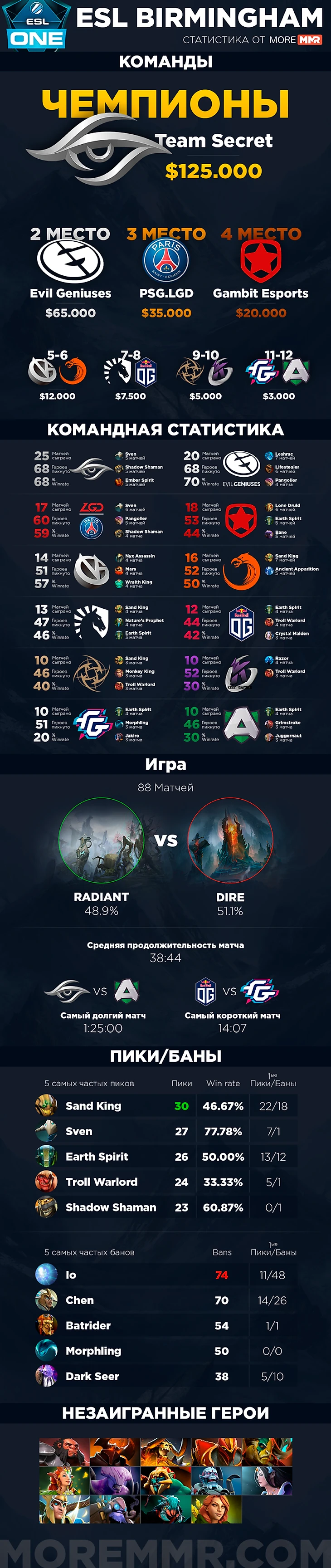С небольшим опозданием встречайте нашу инфографику по ESL One Birmingham 2019.