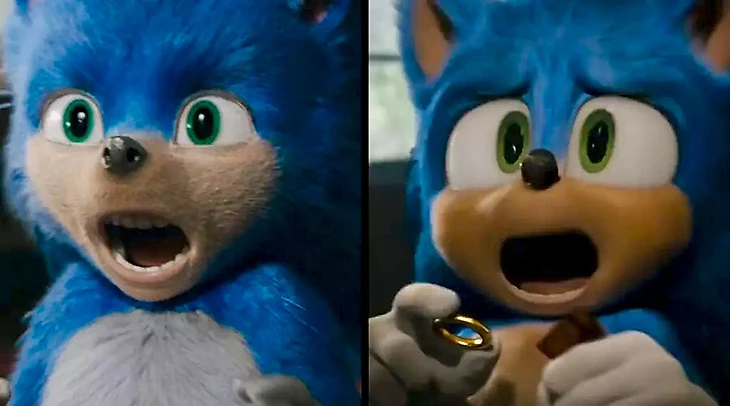 После первого трейлера, где показали крайне странного Соника (на скриншоте слева), создателям фильма пришлось менять его внешность. Из-за этого «Соника в кино» пришлось перенести, и весной 2020 года зрители увидели новую версию сверхбыстрого ежика. Мнения зрителей и критиков разделились: фильм зашел массовой аудитории, и они оценили его в 93% по «Томатометру» и 8,1 на «Метакритике». Из оценок журналистов вышло 47 баллов на «Метакритике» и 63% свежести. Главным недостатком стал фансервис – в некоторых обзорах пишут, что это не фильм, а 90-минутная реклама будущего мерча.