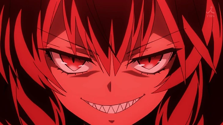 Зубы превращаются в острые треугольники. Так улыбаются, когда получают удовольствие от чужих неудач или собираются кого-то уничтожить. У положительных героев появляется в комедийных моментах, когда они дразнят друзей. У злодеев это просто часть базового дизайна лица.