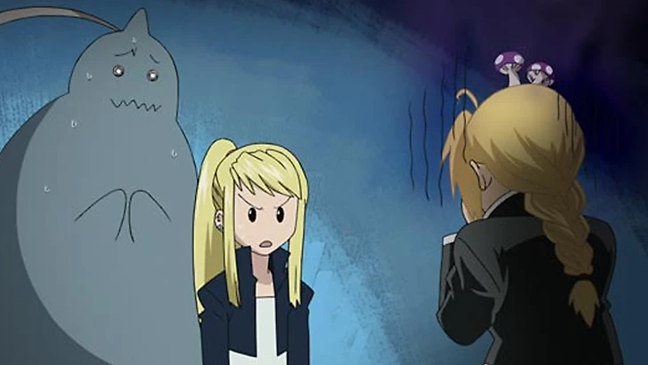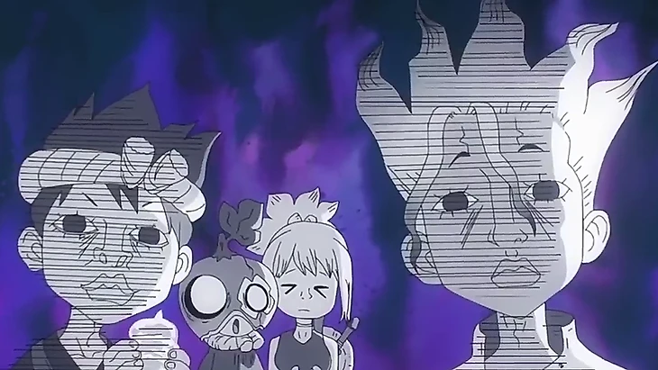Рот исчезает с лица или становится крошечной точкой. Показывает полное отсутствие эмоций или крайнюю степень подавленности, когда герой настолько шокирован, что не может открыть рот. Или настолько спокоен, что лицо превращается в маску. Используется для роботоподобных героев, которые вообще не умеют выражать чувства.