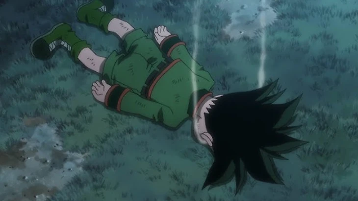 Персонаж превращается в маленькую светящуюся точку и исчезает в небе. Классический способ временно убрать героя из истории. Часто происходит после мощного удара или когда персонажа отправляют в полет. Если блик мигает и пропадает, значит, увидим героя в следующей серии минимум.