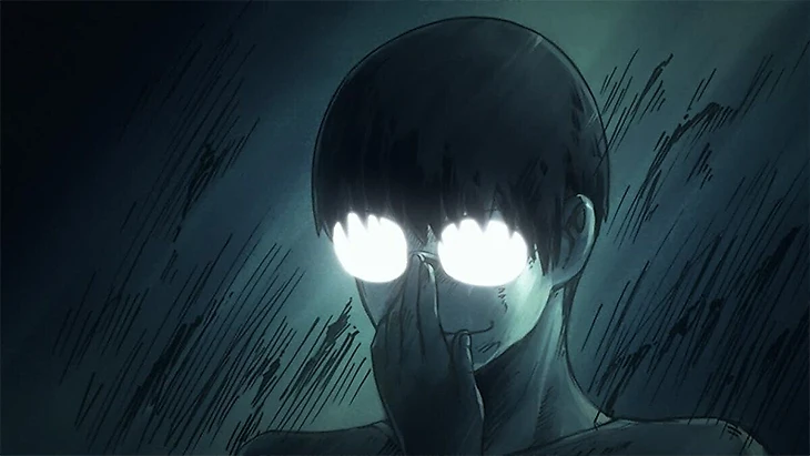 Очки становятся полностью белыми и скрывают глаза, чтобы спрятать истинные эмоции персонажа или создать интригу. Часто появляется, когда герой что-то замышляет, анализирует ситуацию или собирается раскрыть важную информацию. Классический жест – поправить очки средним пальцем, после чего блики исчезают и обнажают холодный расчетливый взгляд.