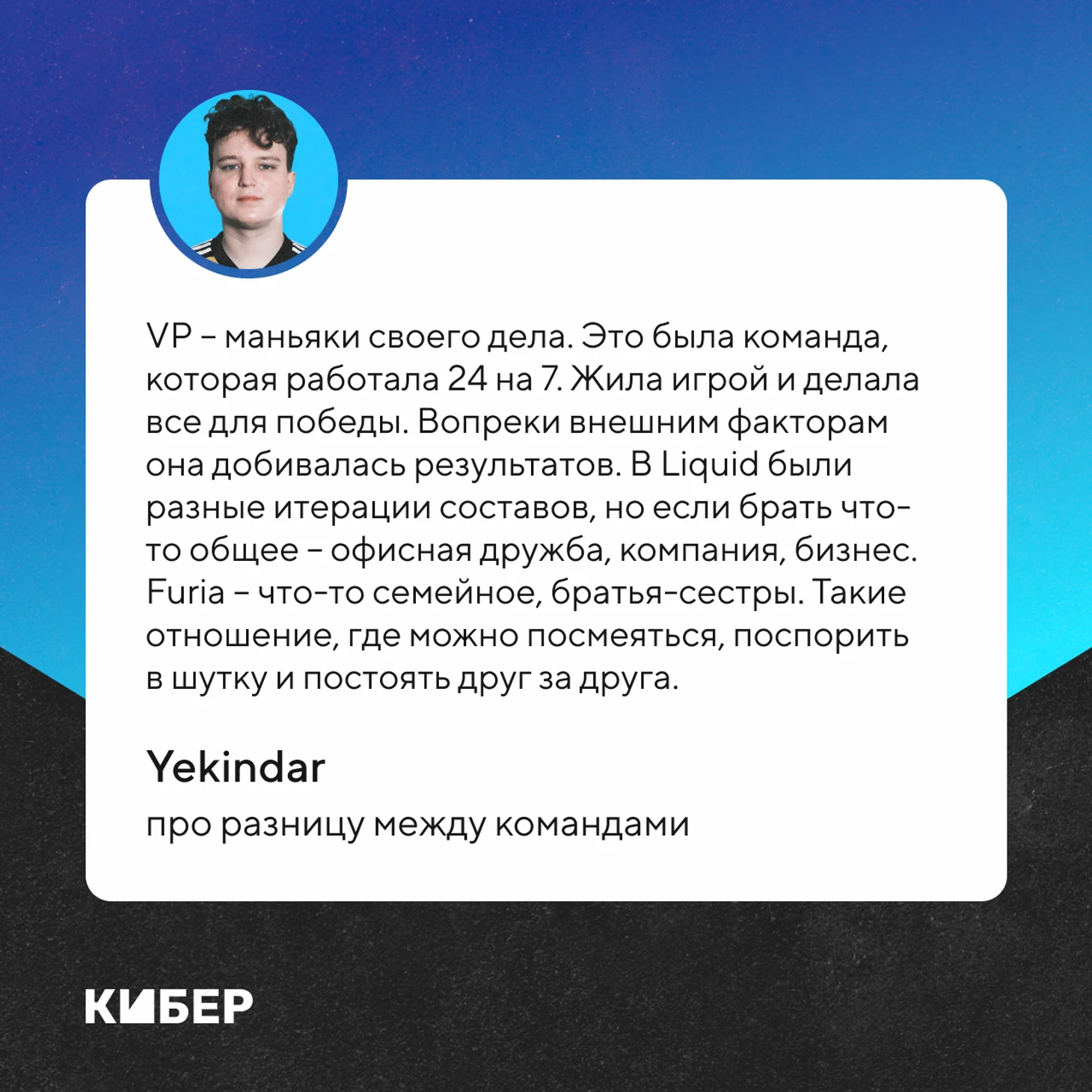 – Ты играл в Virtus.pro, Liquid и Furia. Это три совсем разных команды с точки зрения ментальности. Можешь выделить отличительную черту каждой?