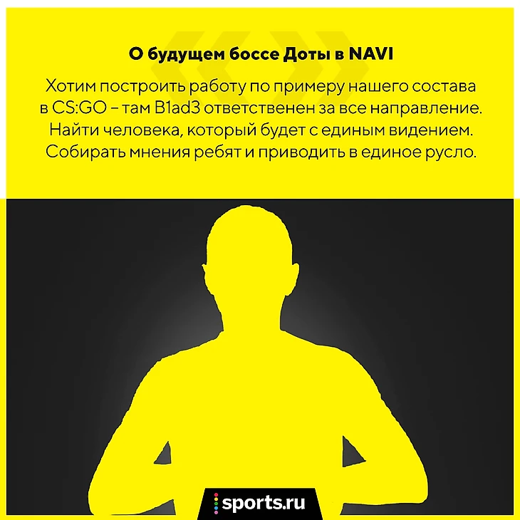 Я повторюсь, как ни крути, даже если ты отдаешь полный карт-бланш человеку, он не принимает решения единолично. Ты не можешь не вовлекать игроков, потому что это дает тебе более широкий взгляд на конкретную ситуацию. Но мы будем опираться на его мнение и доверять в формировании нашего состава и развития Дота будущего в NAVI.