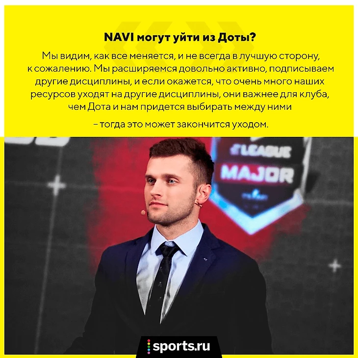 – А ты видишь вариант, когда NAVI уходит из Доты? Или NAVI в Доте навсегда, потому что есть наследие, и мы будем бороться до последнего?