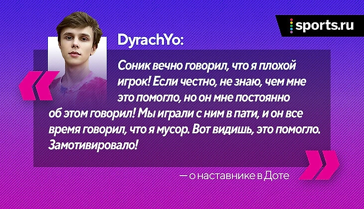 Совсем недавно Антона «DyrachYo» Шкредова все знали скорее по забавному никнейму и соответствующим ему ошибкам в играх. Теперь он чемпион первого сезона европейского DPC, вице-чемпион второго и участник первого в своей карьере мейджора в составе Gaimin Gladiators. Этот путь он прошел невероятно быстро – менее чем за год. И хоть его карьера не переполнена событиями мирового масштаба, ему есть о чем рассказать.