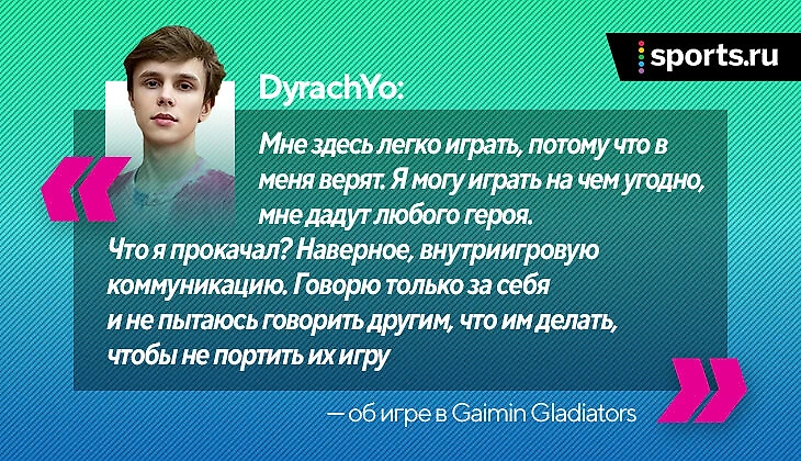 – Мне здесь легко играть, потому что в меня верят. Я могу играть на чем угодно, мне дадут любого героя. Что я прокачал? Наверное, внутриигровую коммуникацию. Стал меньше давать лишней информации. Говорю только за себя и не пытаюсь говорить другим, что им делать, чтобы не портить их игру. Может, что-то улучшилось и в понимании передвижений. Я стал меньше умирать – и в этом большой респект нашему тренеру. Он в этом направлении много работает.