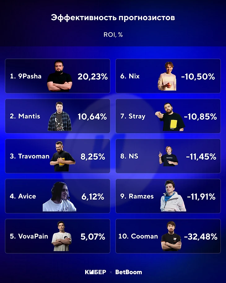 ➢Несмотря на низкий винрейт, Vovapain вышел в плюс за счет успешных ставок на BetBoom Streamers Battle. Самая удачная – на матч Ramzes Team – Voodoosh Team с коэффициентом 5,3.