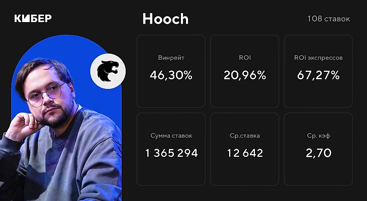 ➢ Hooch тоже прибавил в винрейте и ROI, но упал на третье место в общем рейтинге.