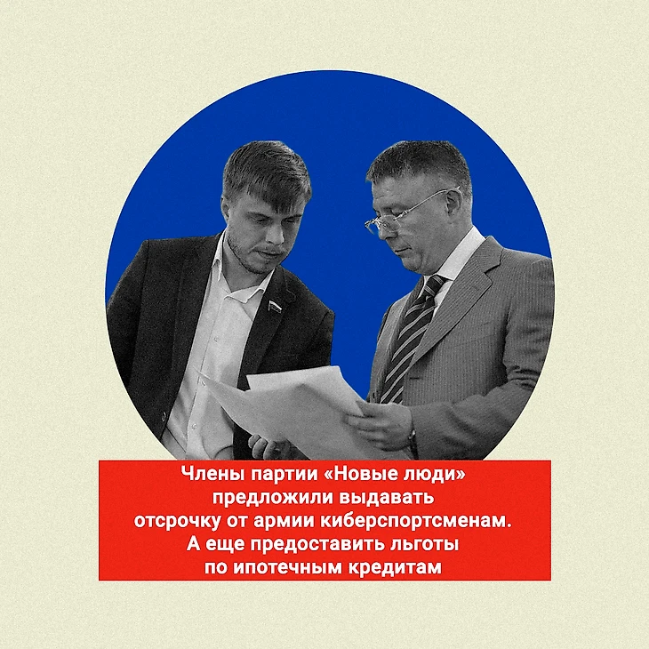 – 24 апреля президент Федерации компьютерного спорта России Дмитрий Смит предложил выдавать киберспортсменам отсрочку от срочной службы в армии. Спустя месяц новость дошла до представителей Госдумы: члены партии «Новые люди» также предложили выдавать отсрочку киберспортсменам, а еще предоставить льготы по ипотечным кредитам;
