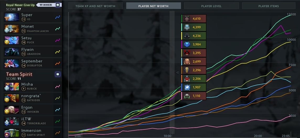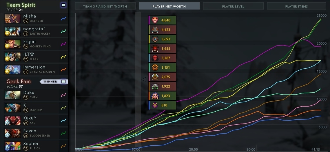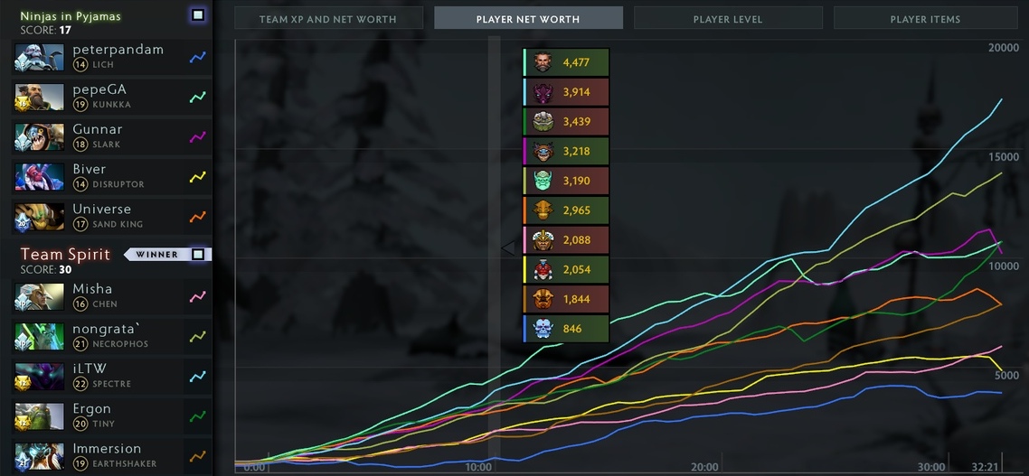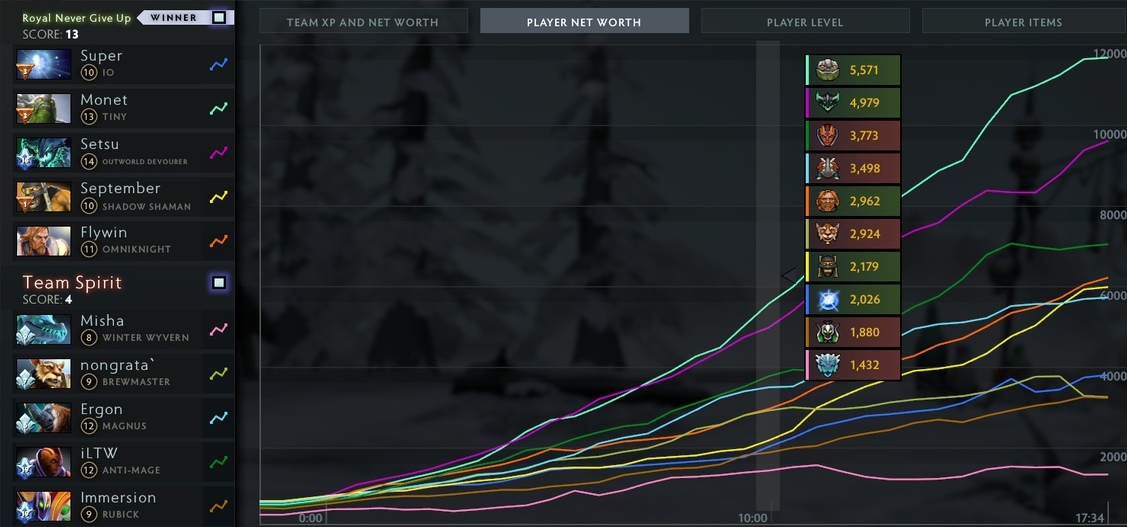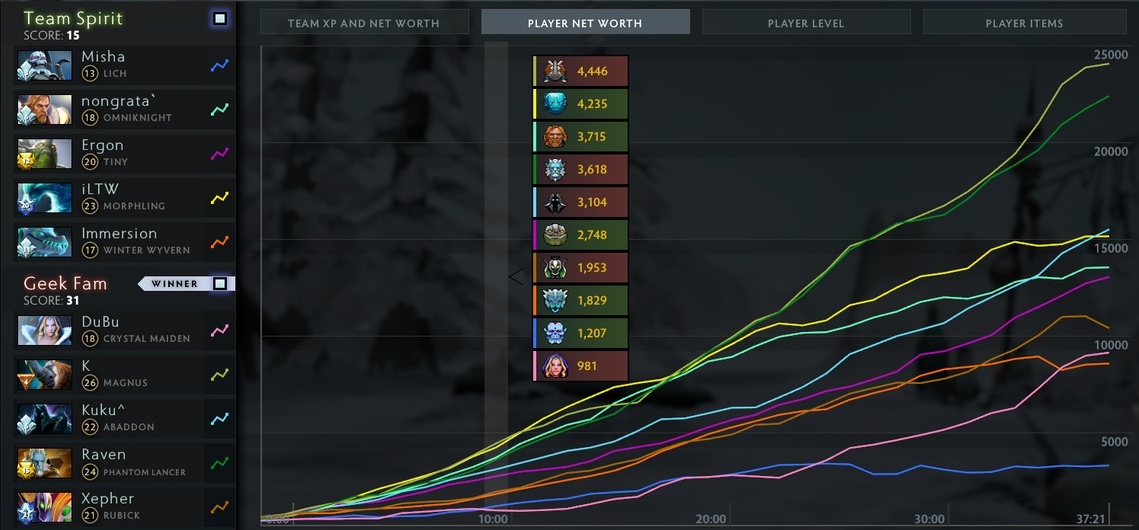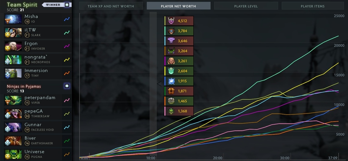 2. Второе заключение вытекает из первого. Так как Спирит осознано играют всей командой на Игоря, приходится жертвовать Эргоном. Он самый бедный мидер на турнире.