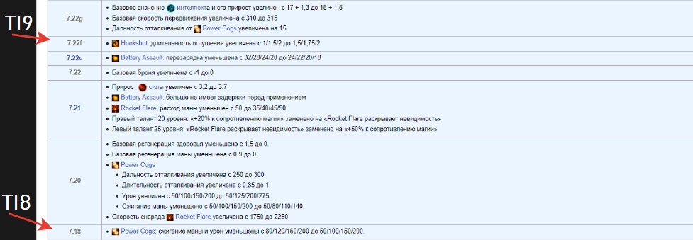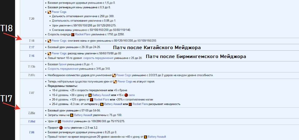 После TI6 Клокверка неплохо апали. В патче 7.00 ему дали такие таланты, что их пришлось несколько раз менять к новому Инту; чуть позже Ратлтрапу подняли базовую силу и ее прирост.