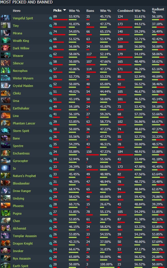 – CHINA DOTA2 SUPER MAJOR (с квалами): 25 пиков (топ-27), винрейт 36%, топ-9 по банам, 6-19 на 3-4.