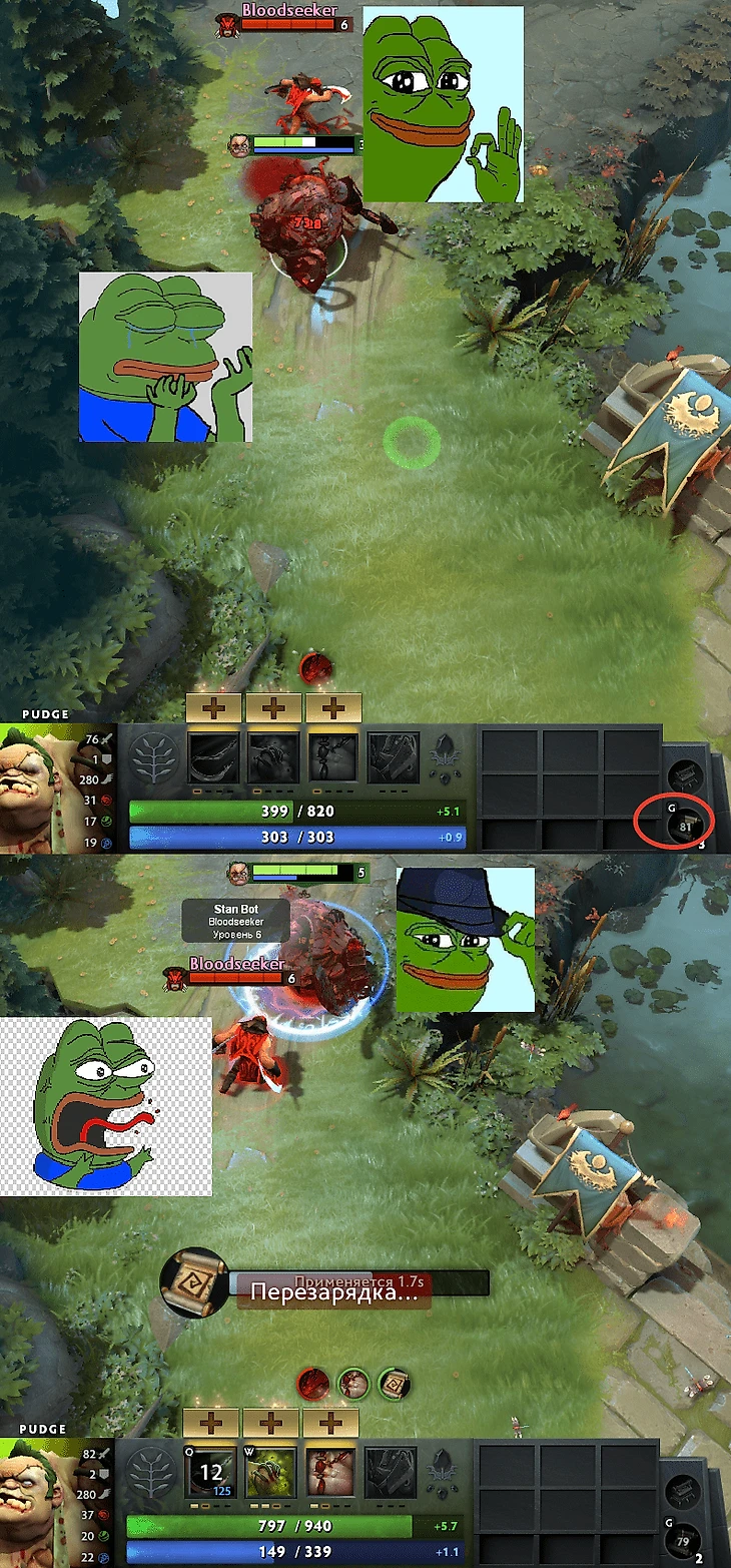 - Думал, что делает телепорт не видно из-за дерева, но на самом деле спалился перед ДП; - Долго думал перед нажатием телепорта и потерял четверть ХП уже там; - Долго думал, куда бежать из деревьев, и потерял еще четверть здоровья; - Не знал, что рядом есть вражеский Клокверк, а за башней стоит вард.