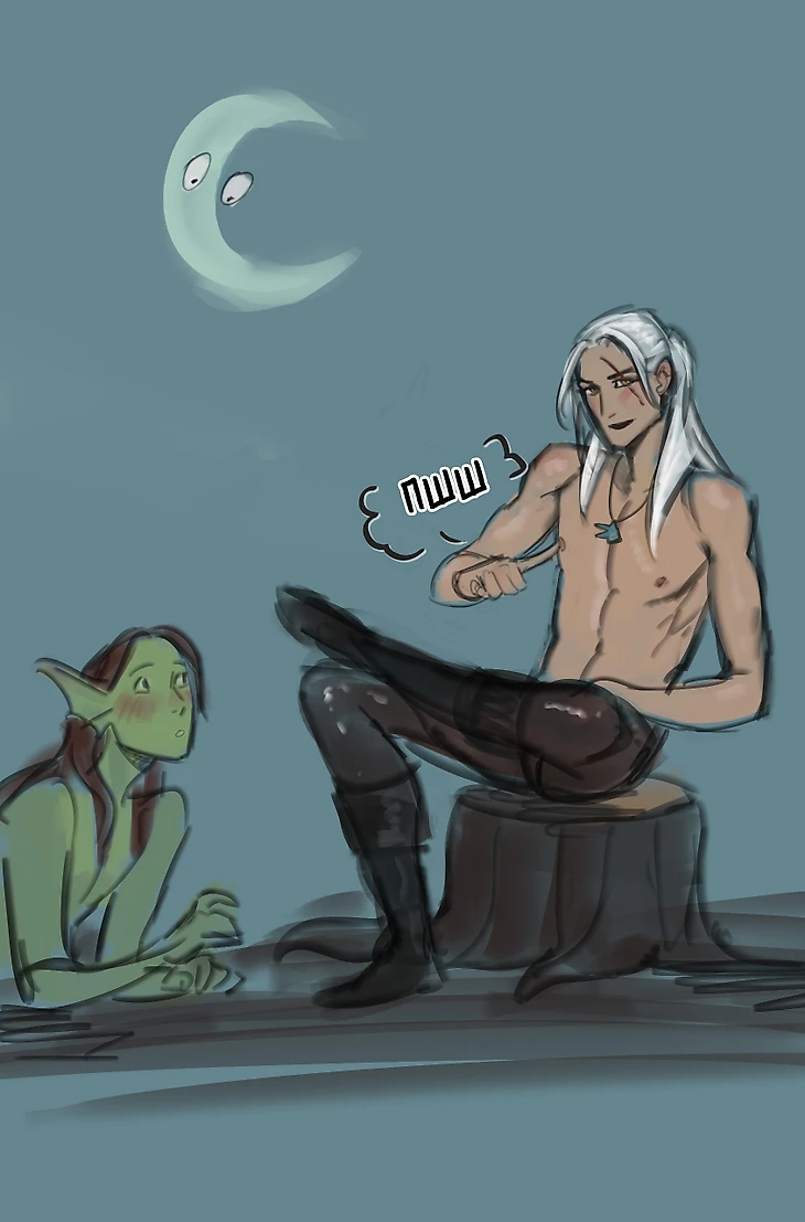 Напомним, как выглядел оригинал, с которого все началось. Геральт сидит на берегу и поучает водника: