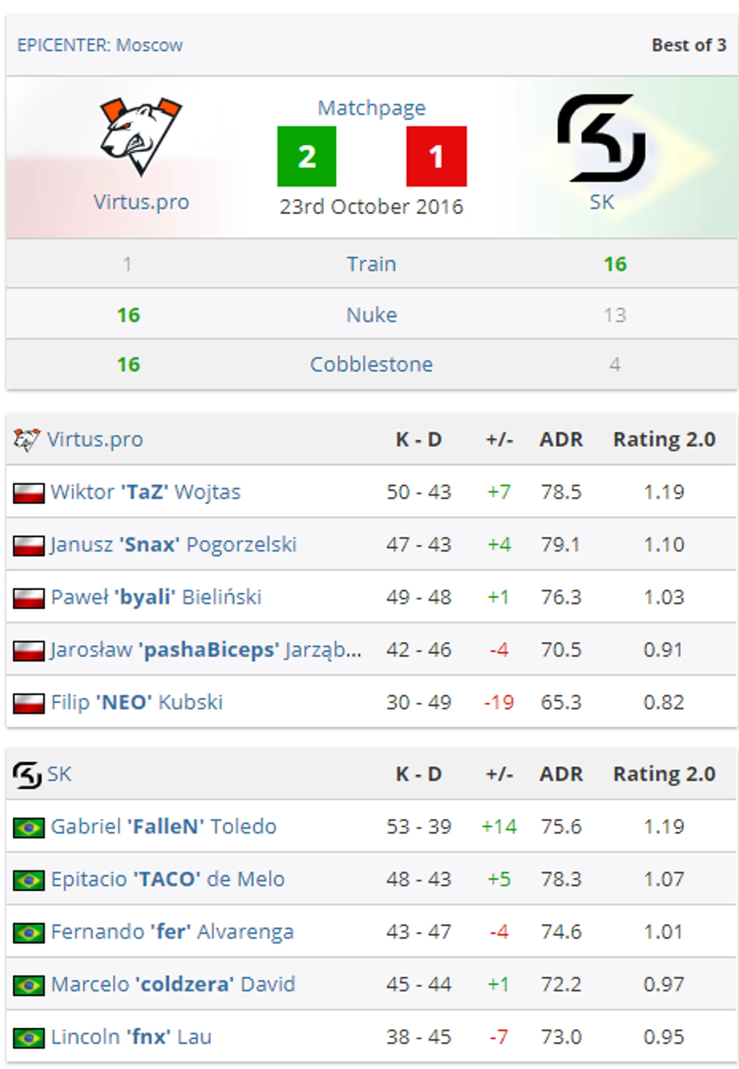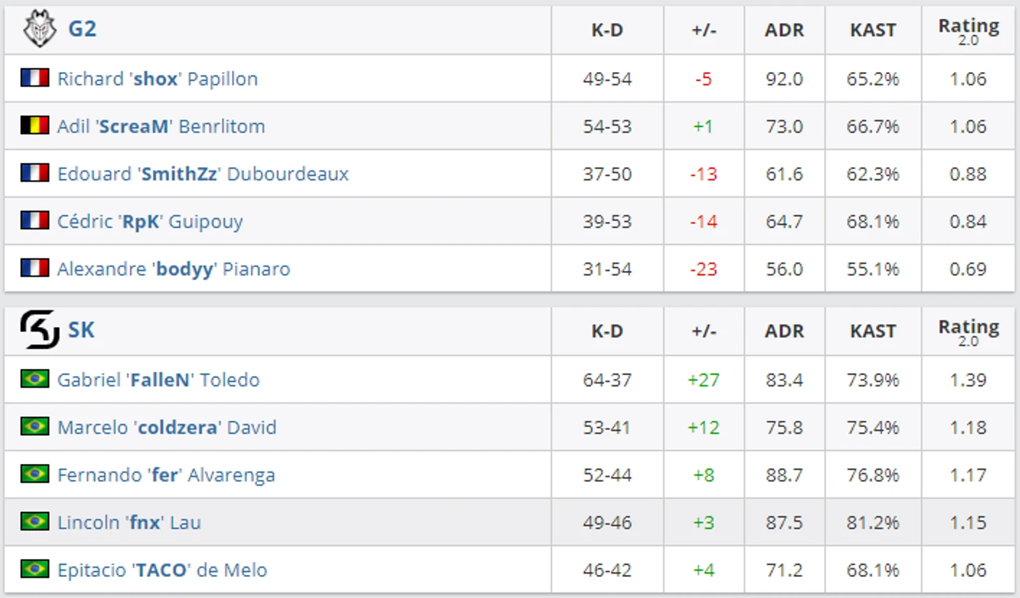 Сама же игра закончилась со счетом 2-1 в пользу SK. Все бразильцы закончили встречу с рейтингом в плюс.