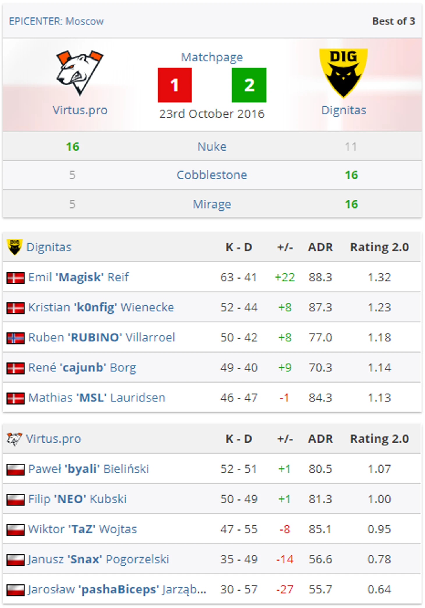 Финал VP - DIG. Несмотря на искрометную игру датчан на этом турнире, в матче с поляками в них мало кто верил. Тем более, когда Virtus.pro повели после первой карты. Но тут что-то переключилось в мире, в сознании игроков и две оставшиеся карты ушли в актив Team Dignitas. Тот вечер был незабываемым для парней из Дании. Попав на турнир через квалификацию, они обыграли лучшие команды мира. А московские фанаты, конечно же, расстроились. Все в зале болели за VP.