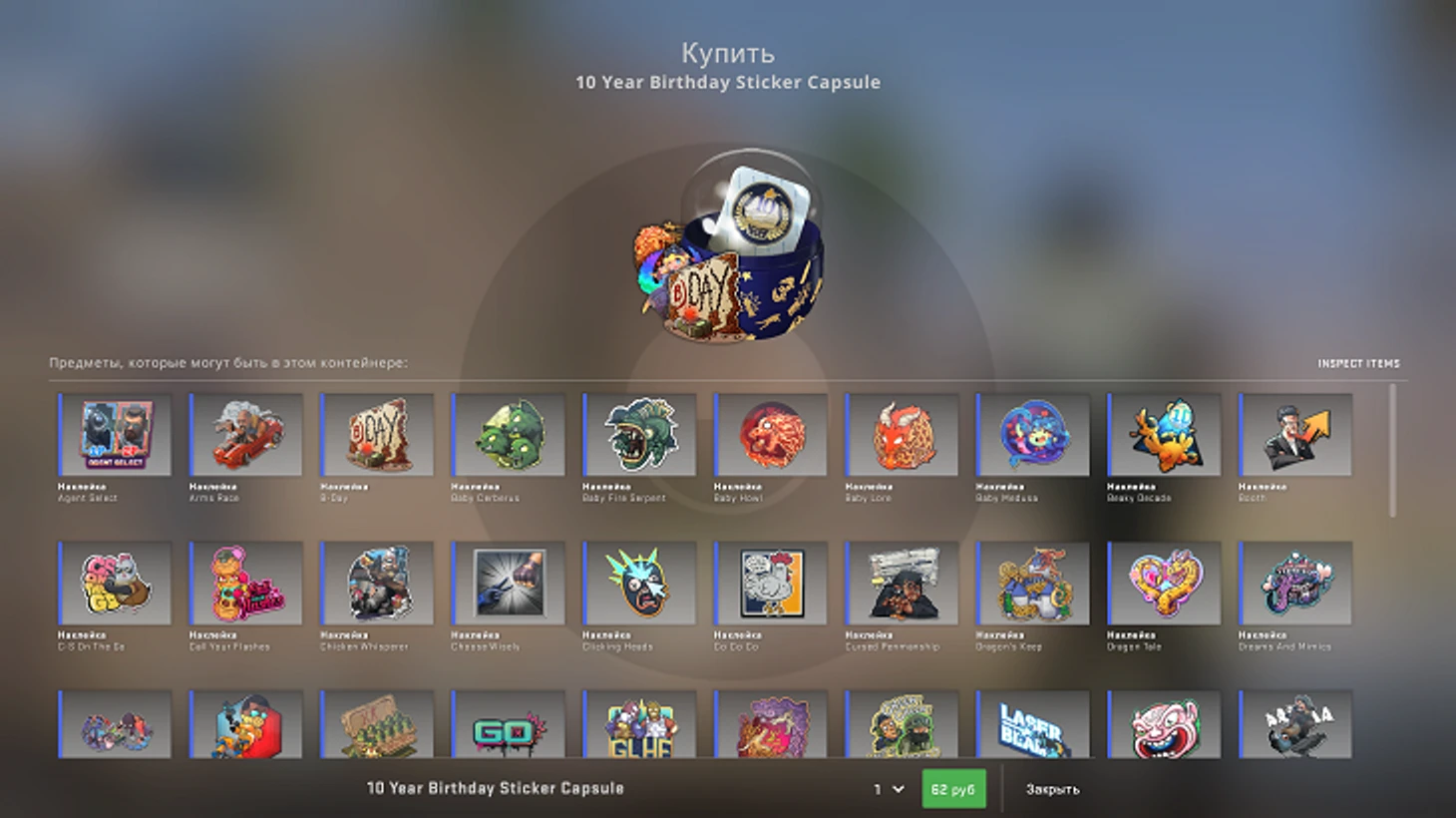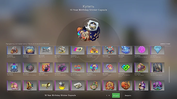 В честь дня рождения в игре появилась огромнейшая капсула с 65 наклейками. 6 из них – анимированные. Раньше в CS такого не было.
