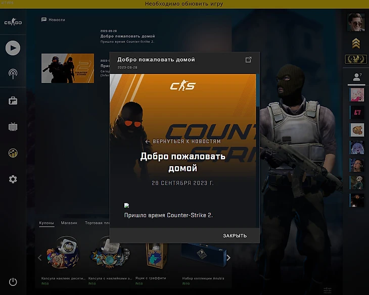 Cимволично, что при запуске игры появляется табличка «Добро пожаловать домой» – это связано с релизом CS 2, но все же.