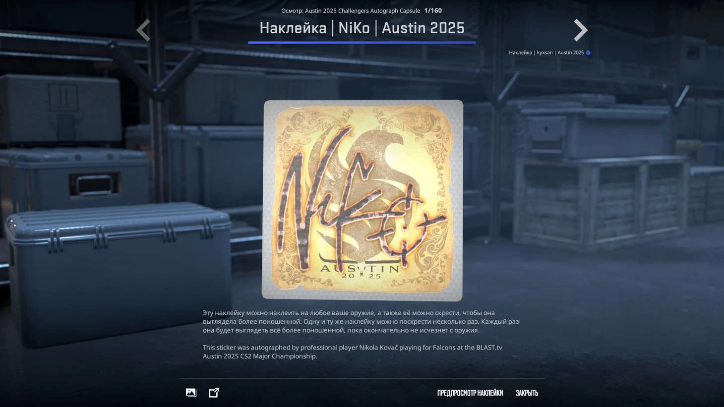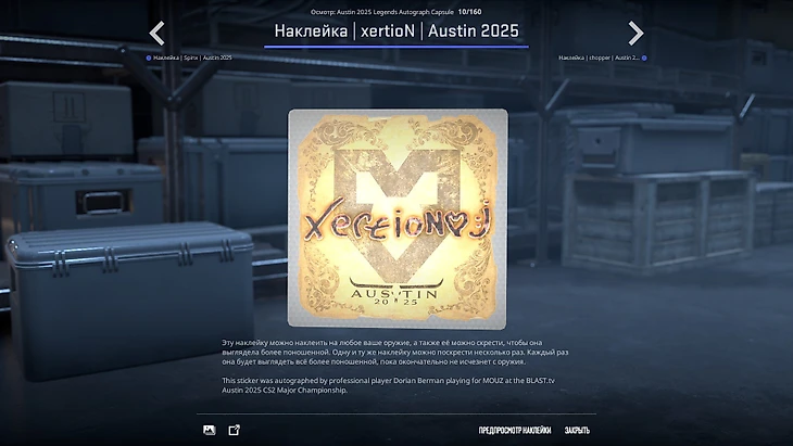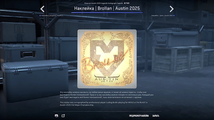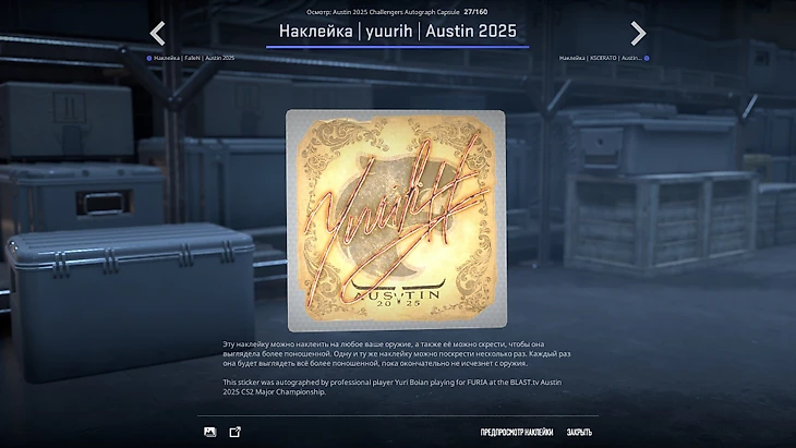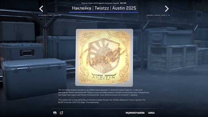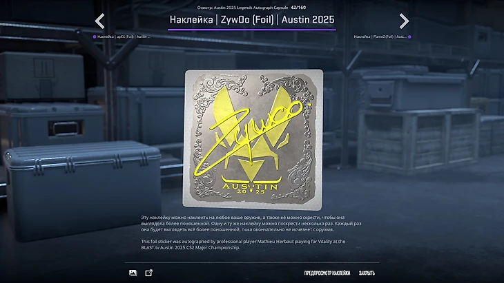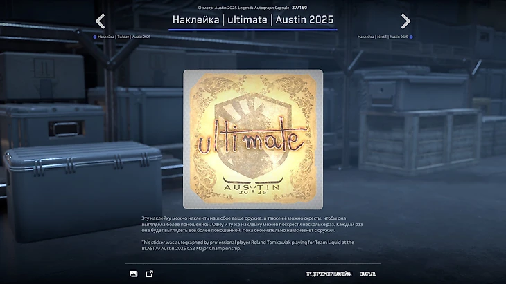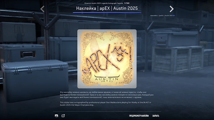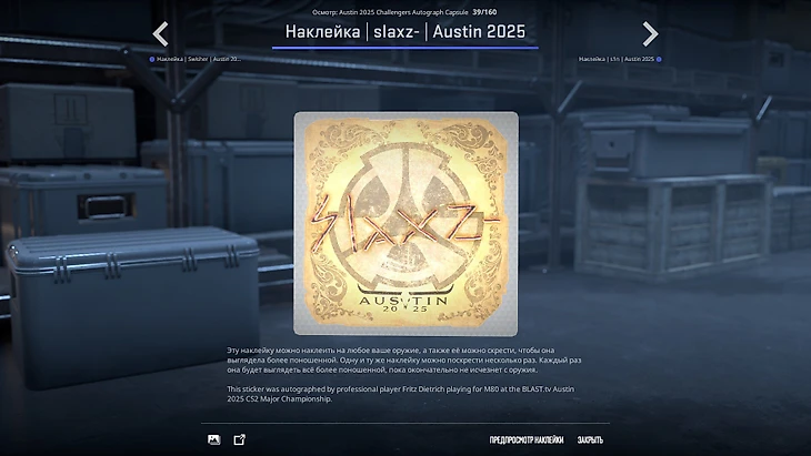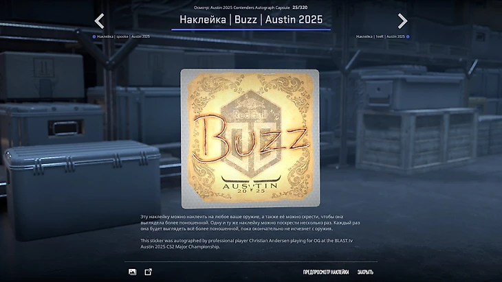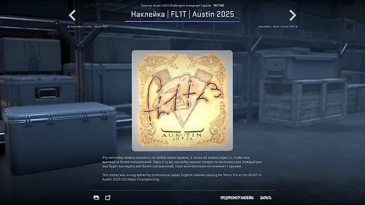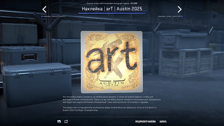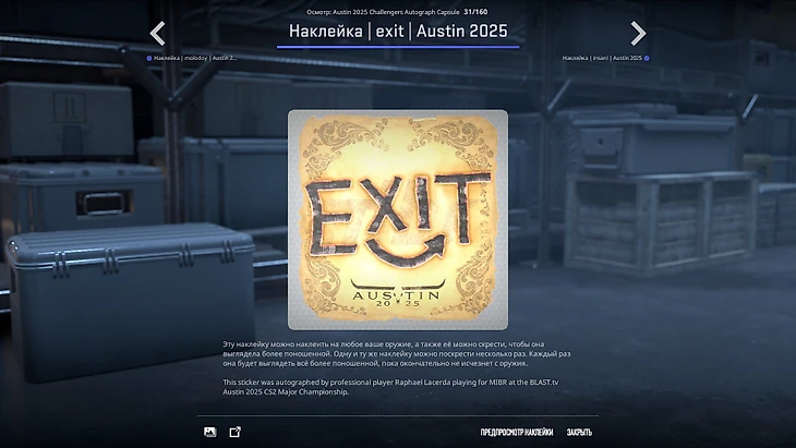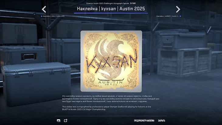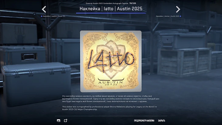 В CS 2 добавили предметы к BLAST Austin Major 2025, в том числе – автографы игроков. Они доступны в 4 качествах.