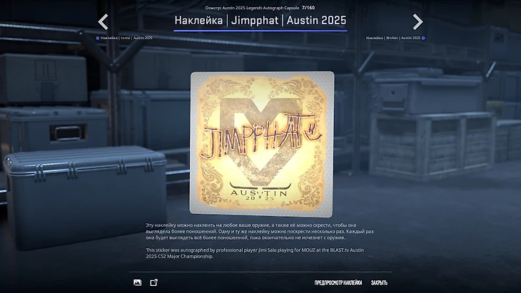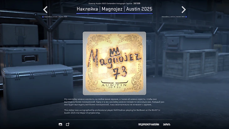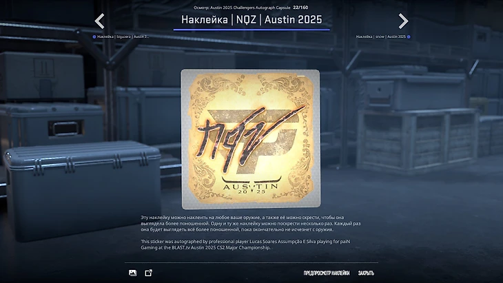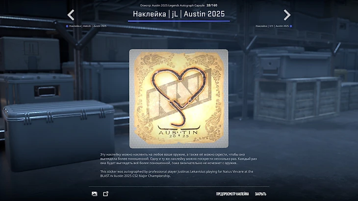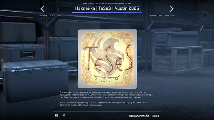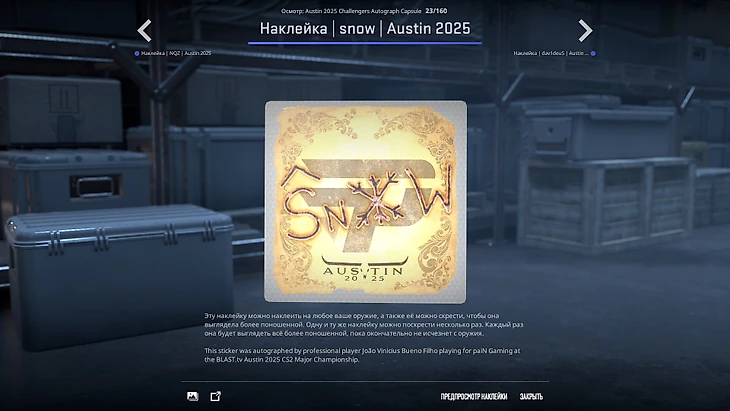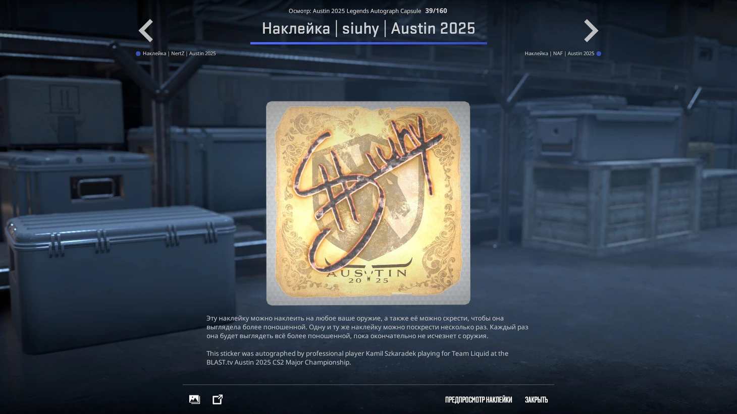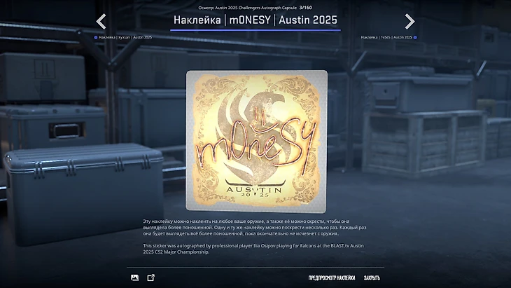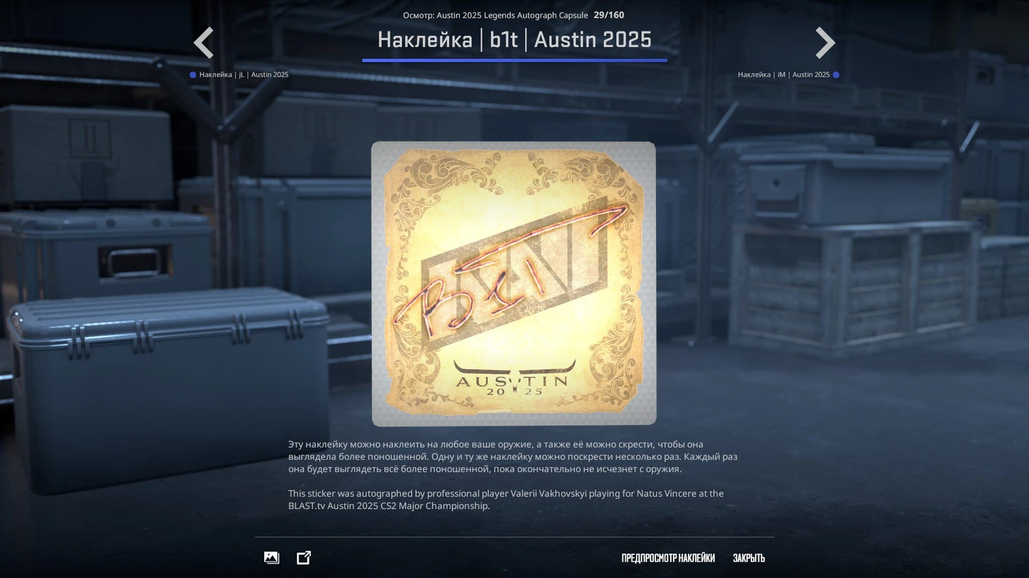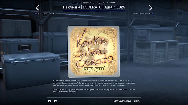 В CS 2 добавили предметы к BLAST Austin Major 2025, в том числе – автографы игроков. Они доступны в 4 качествах.