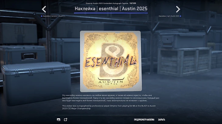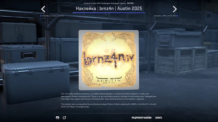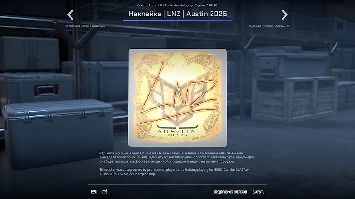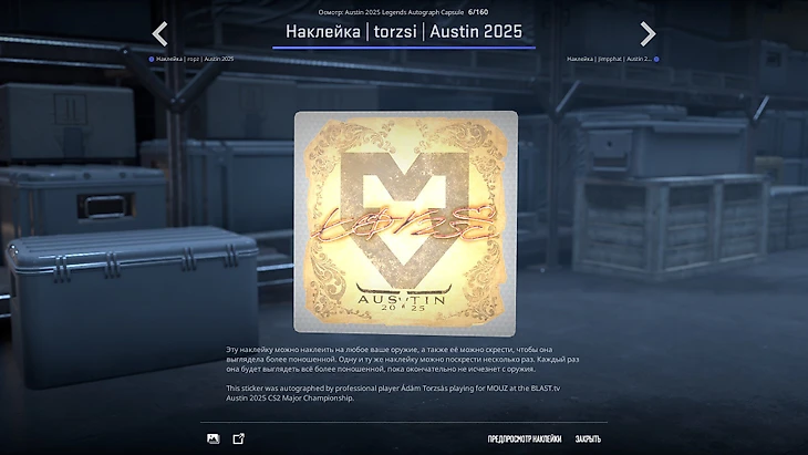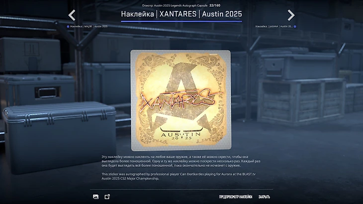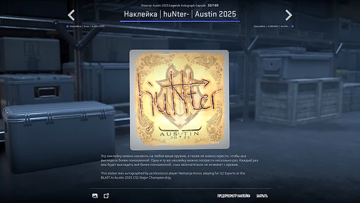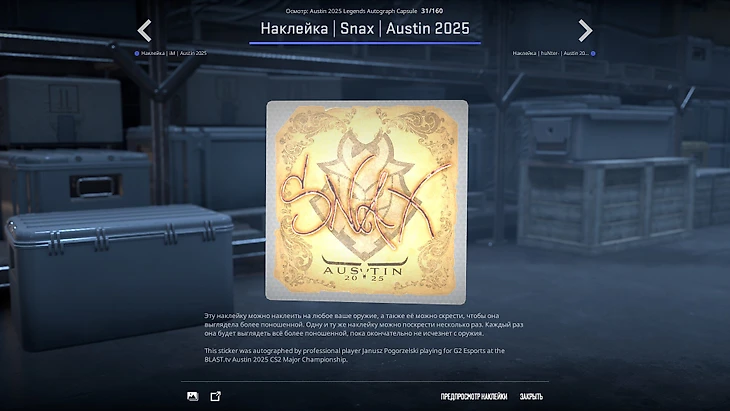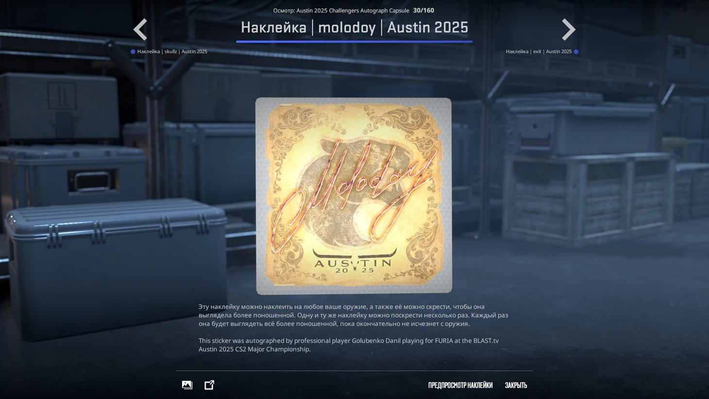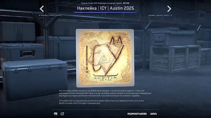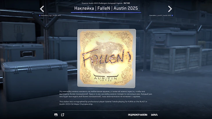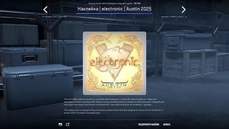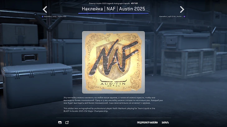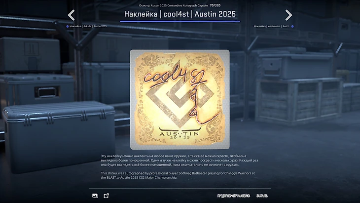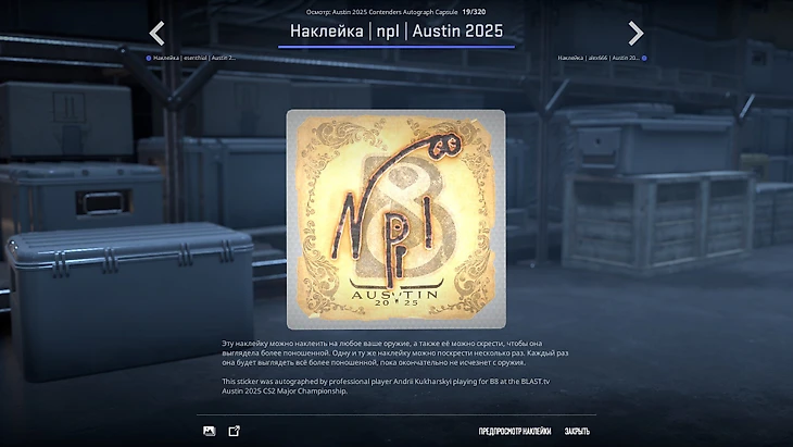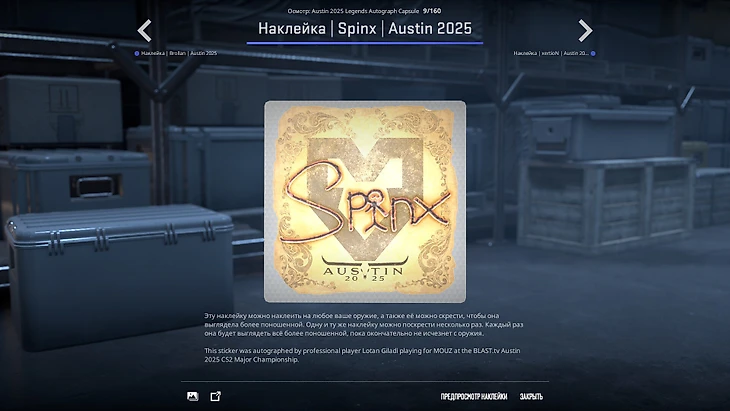 В CS 2 добавили предметы к BLAST Austin Major 2025, в том числе – автографы игроков. Они доступны в 4 качествах.