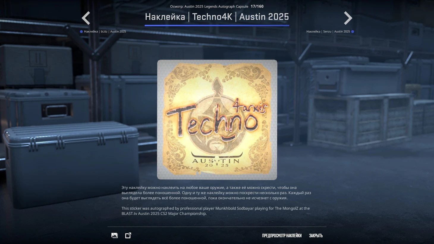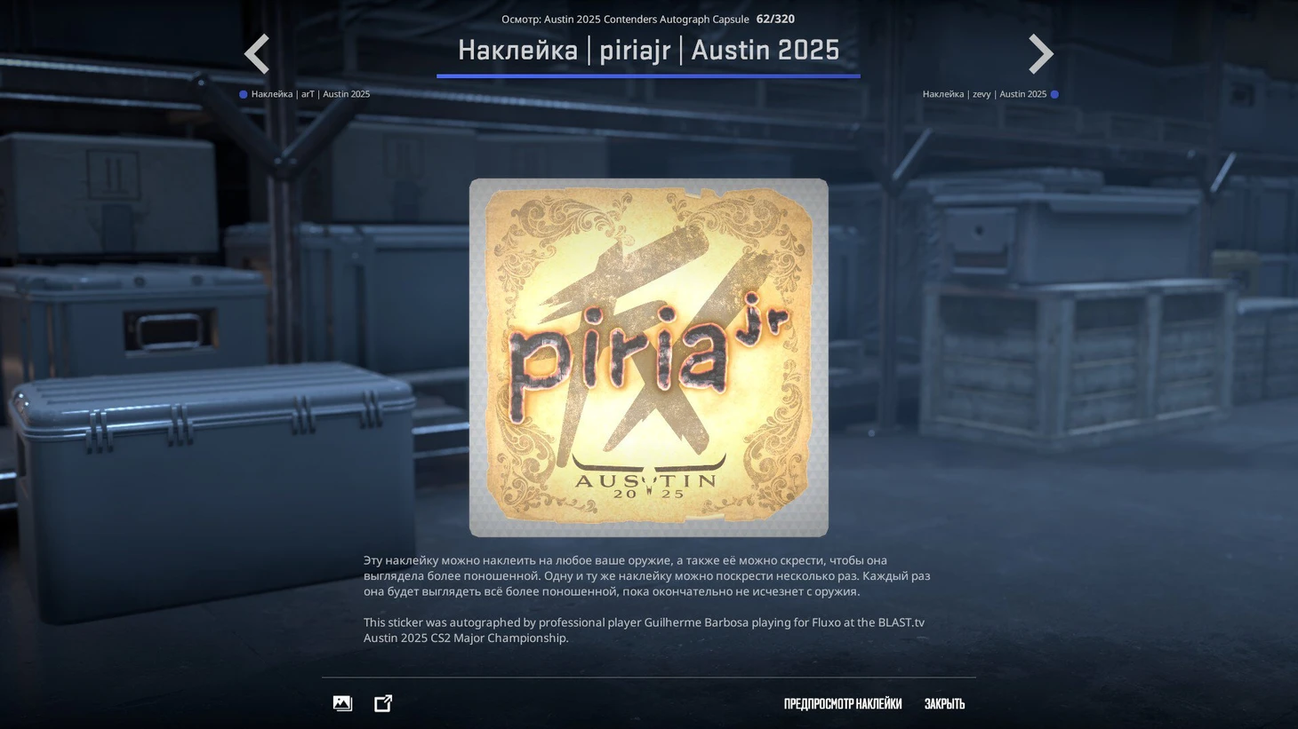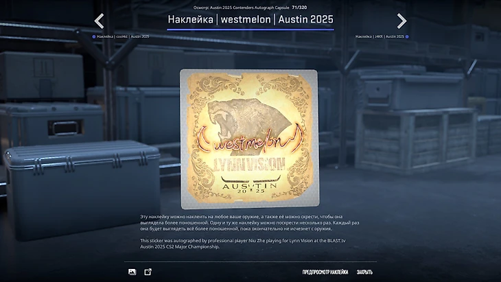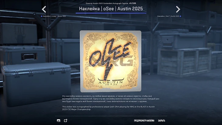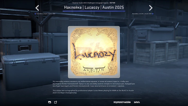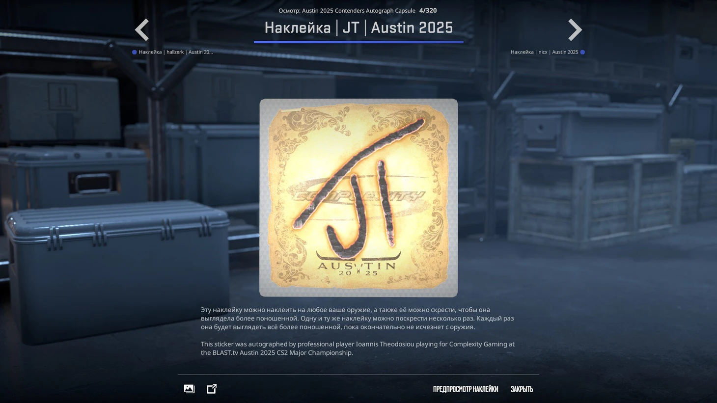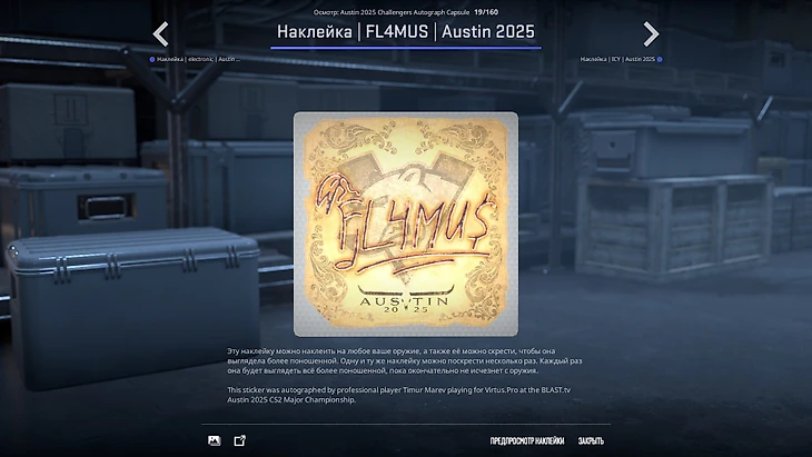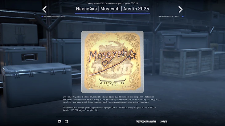 В CS 2 добавили предметы к BLAST Austin Major 2025, в том числе – автографы игроков. Они доступны в 4 качествах.
