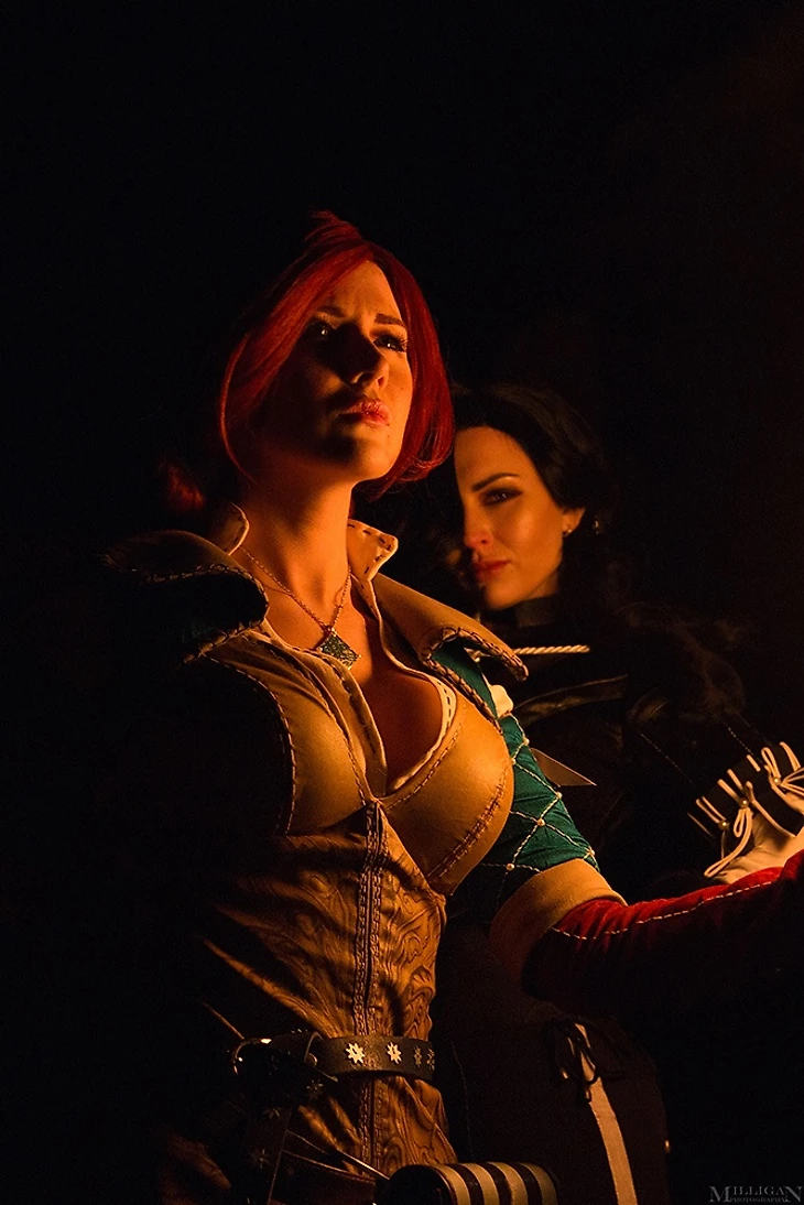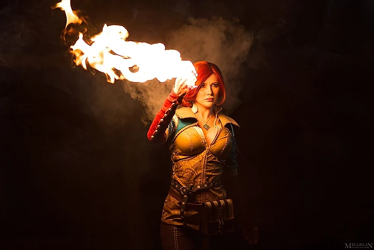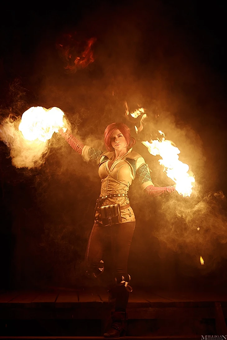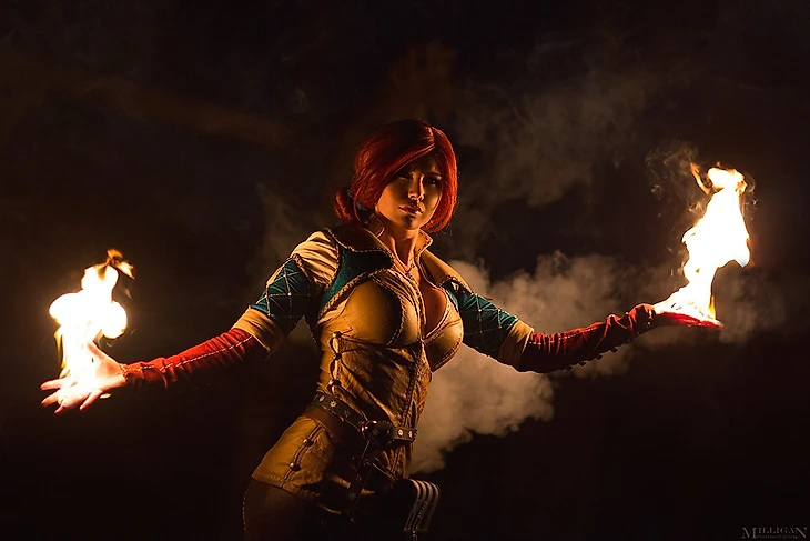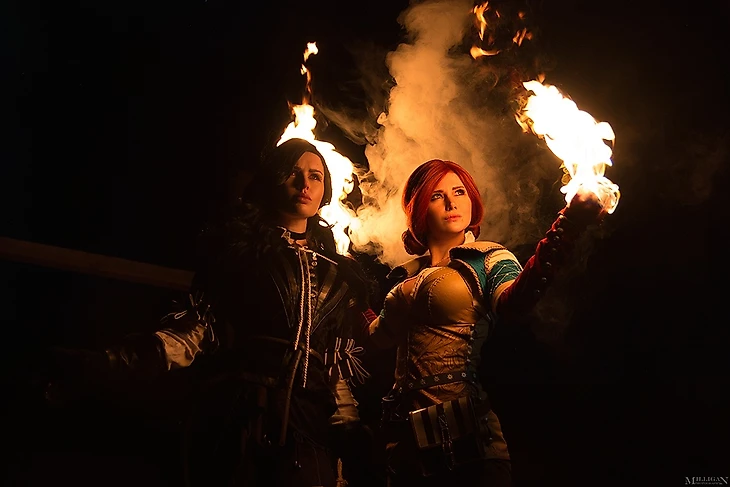 Косплеерши в образах Трисс и Йеннифэр снялись с настоящим огнем