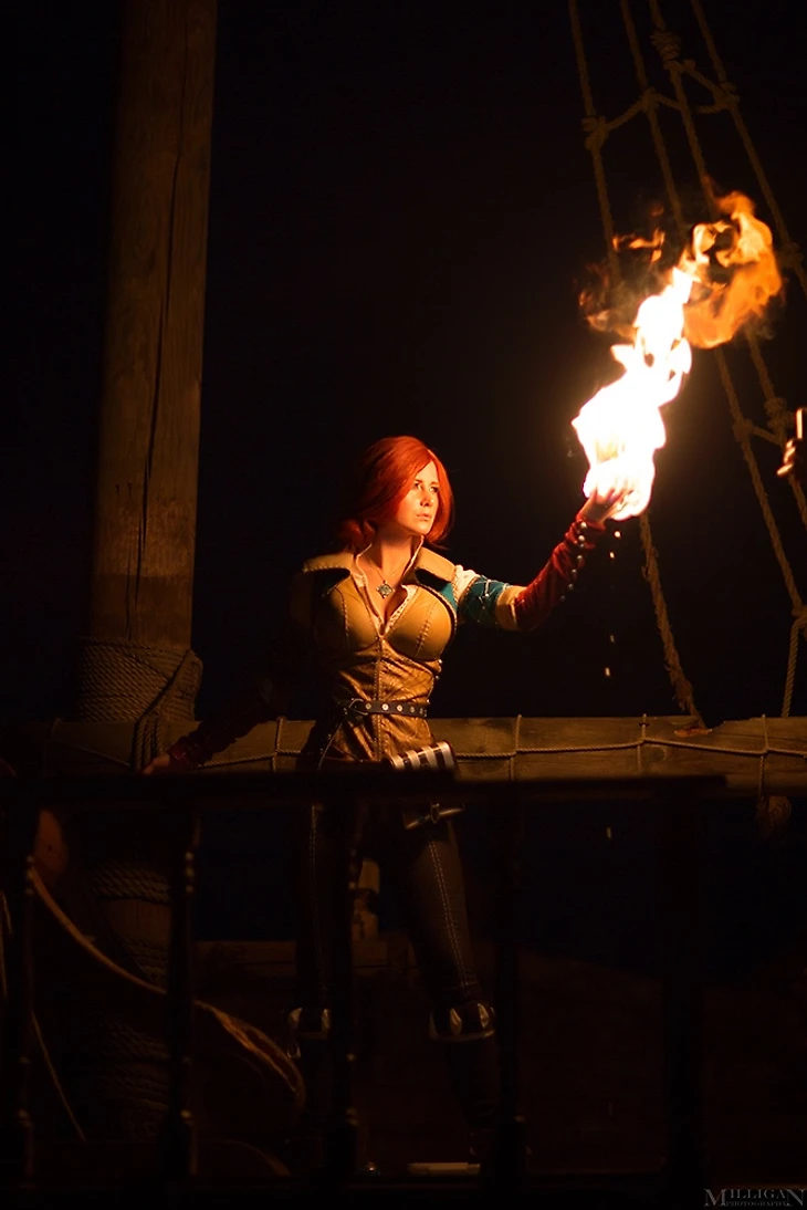 В большинстве случаев косплееры фотошопят огонь на фото, чтобы не подвергать себя опасности. Но не в этом случае. Трисс продемонстрировала магию огня на корабле.