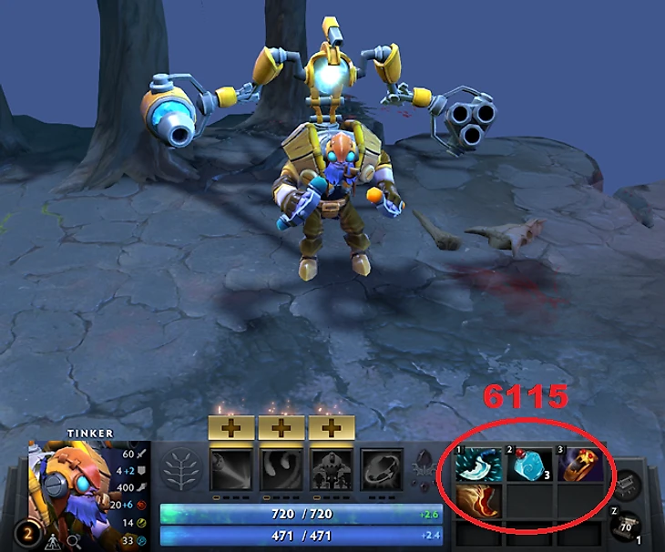 Тинкер же без стартового бая и регена должен потратить на Блинк, Трэвела, Боттл и Соул Ринг 6115 золота.