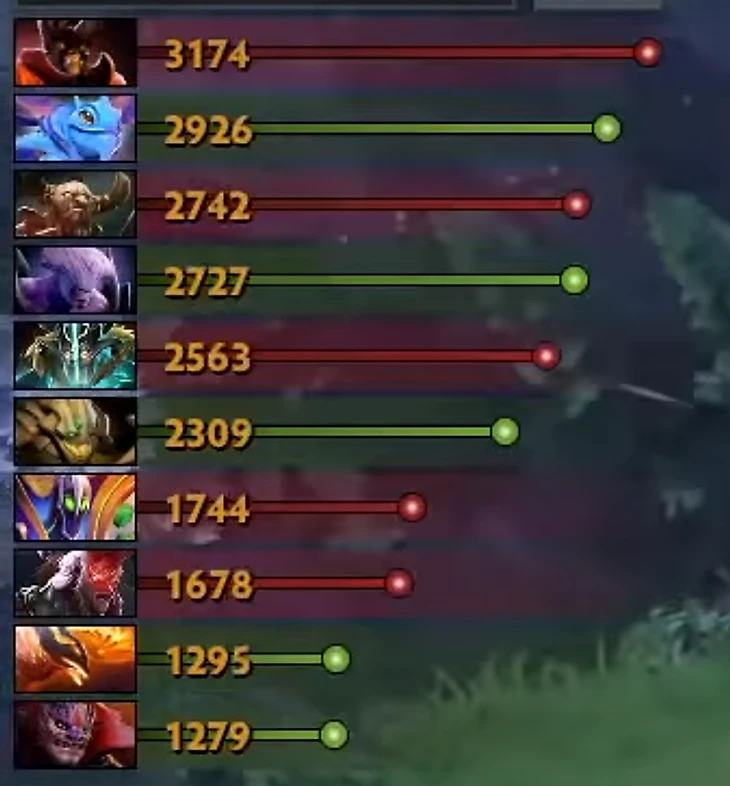 На 6-й минуте игры Гостик получает заветный артефакт и отводит первую пачку в лес. Его нетворс равен нетворсу вражеского керри: