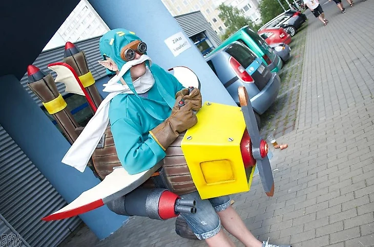 Некоторые косплееры обожают технически сложные костюмы, или скорее экзоскелеты, которые точно произведут впечатление на публику. Но построить маленький самолет или вертолет, который будет работать в помещении, пожалуй, невозможно. По-настоящему креативных людей такими сложностями не остановить, и они выкручиваются как могут. Кто-то смирился с непреодолимой недостоверностью костюма: