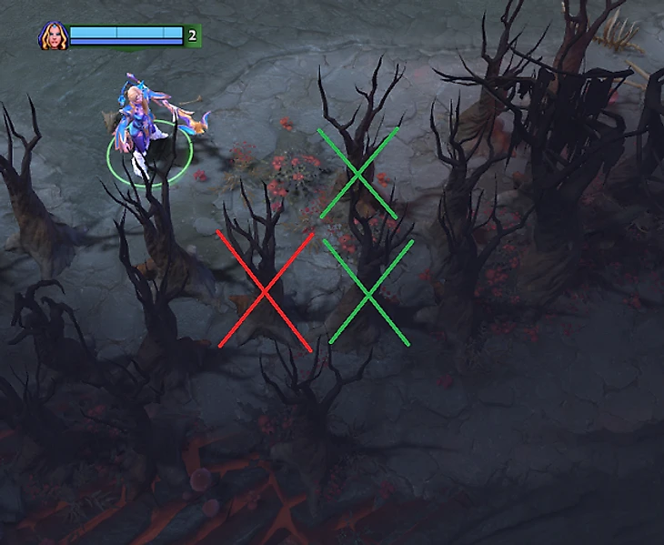 Играя за Dire, попросите керри срубить топором эти деревья: