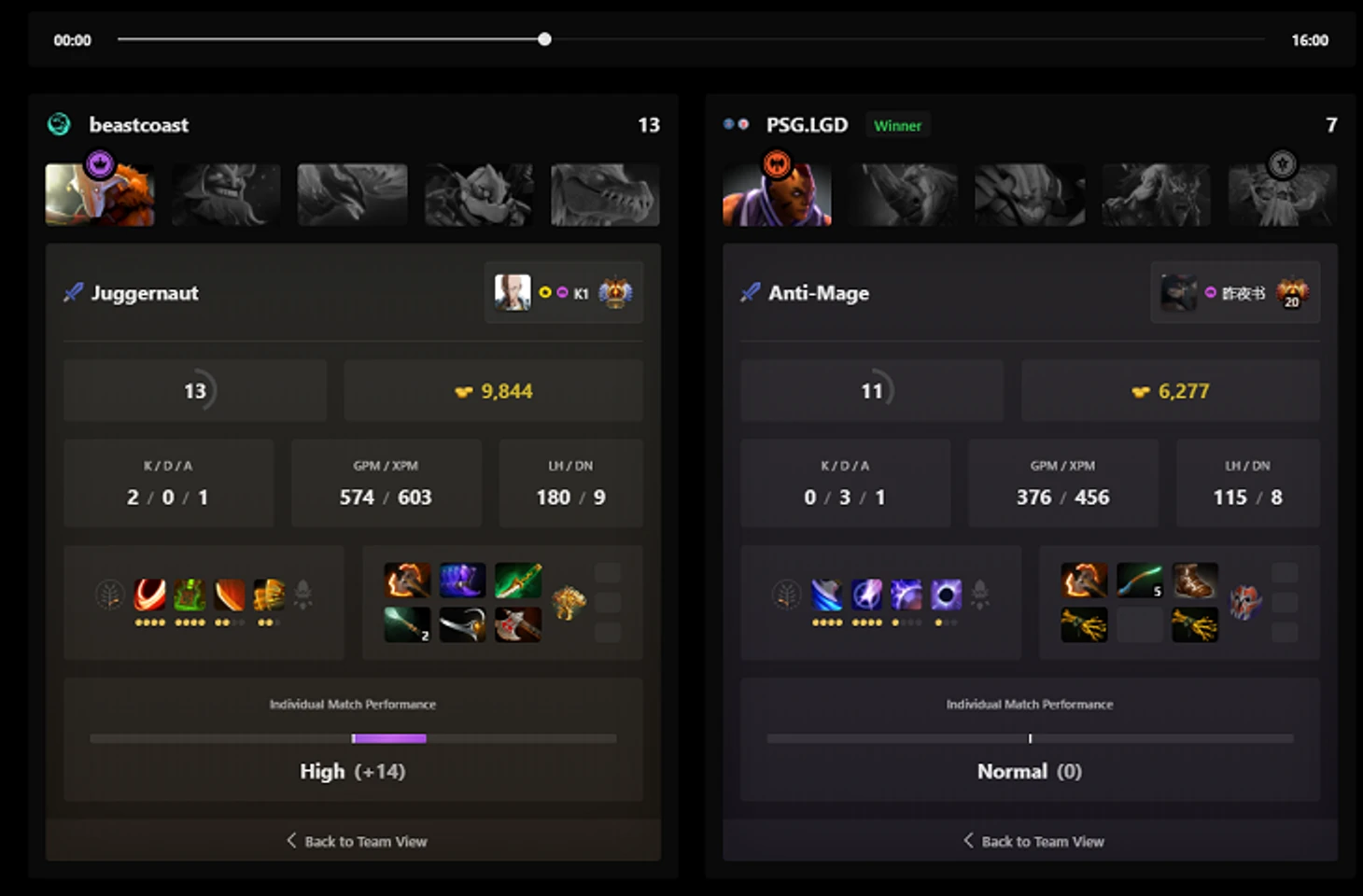 Керри PSG.LGD Ame на первой карте против Beastcoast играл на Антимаге. У него был крайне тяжелый старт – 0-3 к 16-й минуте, но в итоге АМ перевернул игру покупкой одного артефакта – Aghanim’s Scepter.