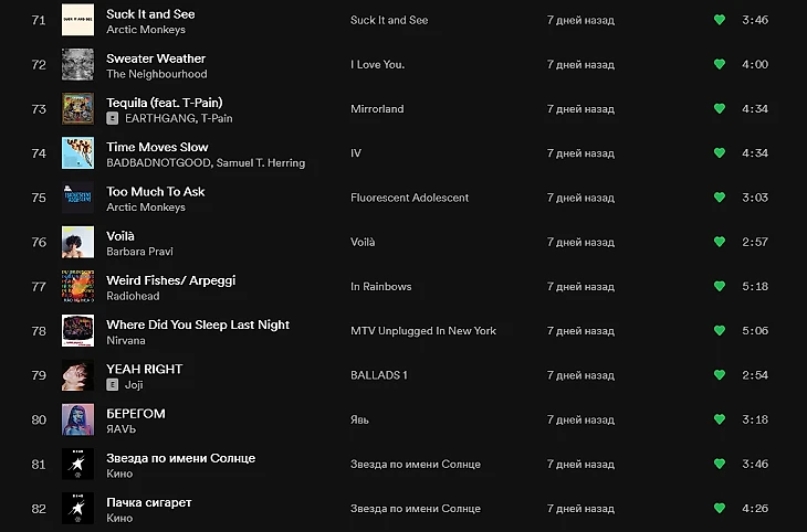 Рядом – баллады Кобейна, Joji, Arctic Monkeys и The Neighbourhood.