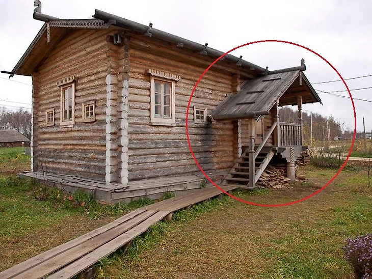 2) В русском деревянном зодчестве так называлась площадка крыльца, пристроенного к дому. Это мощёное возвышение, а также сень, навес над таким крыльцом.