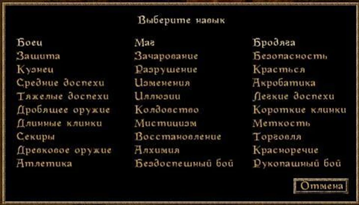 Все эти характеристики, помимо прямого влияния на развитие персонажа, также отвечают за прокачку 27 основных навыков, которые уже определяю успех персонажа в той или иной деятельности.