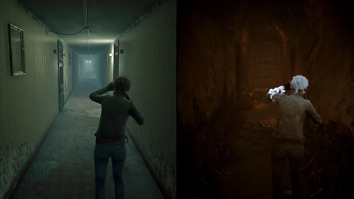 Миры отличаются стилистически – мир духов выделяется симпатичным «загробным» желто-коричневым фильтром и наполнен следами присутствия потусторонней сущности. Помимо этого миры отличаются дизайном уровней – иногда отдельные сегменты миров недоступны для тела или для духа соответственно. Так что для решения головоломок или чтобы пройти дальше нужно действовать поочередно в разных мирах, «вырываясь» из тела по нажатию кнопки, либо же гуляя по мирам параллельно. Например, находя предмет в одном мире и применяя его в другом.